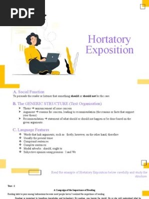 Exposition text, such as its social function, was strengthened in bkof stage. Social distance to safeguard ourselves. The social function of hortatory exposition text is to persuade the reader or listener that something should or should not be the case. Analytical, hortatory exposition, writing, instruction. Analytical exposition hortatory exposition pamphlet.